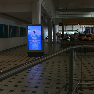At the International Airport the airtrain is less visible across from the terminal building as there are some level changes, this makes getting there more reliant upon on finding the consistent signed walking route out of the correct exit and up across the road.