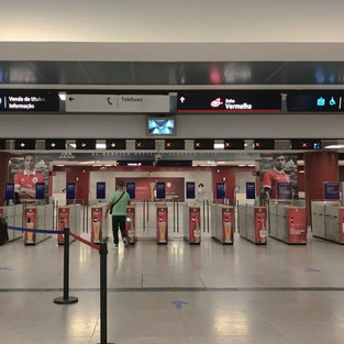 The lines are named but represented by little symbols, so whereas the linha Vermelha (the red line) serves the airport, passengers can also just look out for the red compass icon to follow through the station.